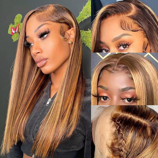 Beluck Highlight 13x6 HD Straight Lace Front Wigs 4/27 Colored Honey Blonde HD Lace Frontal Wigs For Women Glueless Pre Plucked with Baby Hair