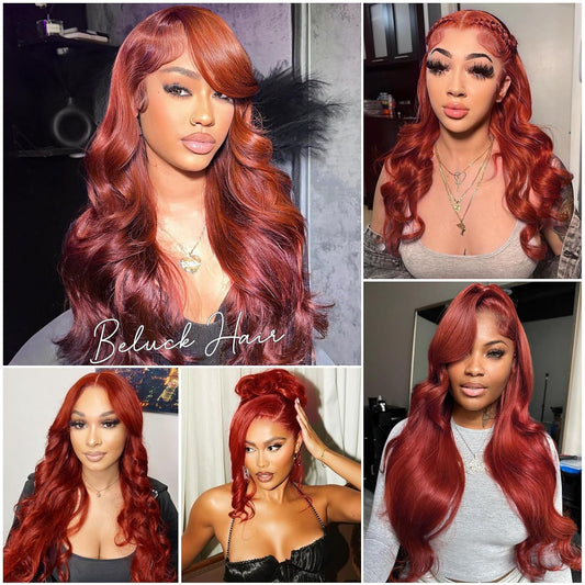 Beluck 13x6 Hd Reddish Brown 99j Burgundy Lace Front Wigs Human Hair Pre Plucked, Body Wave Frontal Wigs Human Hair Hd Lace, Glueless Lace Front Wigs Human Hair Colored With Baby Hair