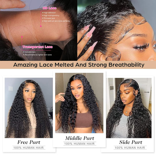 13X6 Lace Front Wig Human Hair Pre Plucked, Water Wave Frontal Wigs Human Hair HD Lace, Glueless 13x6 Lace Front Wigs Human Hair Colored With Baby Hair