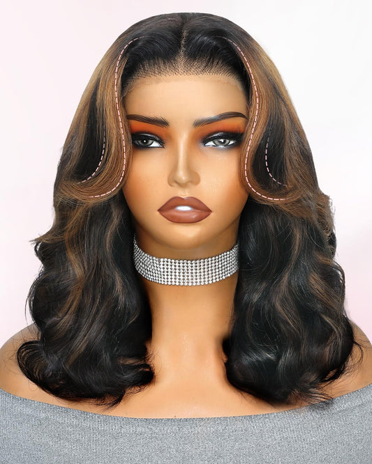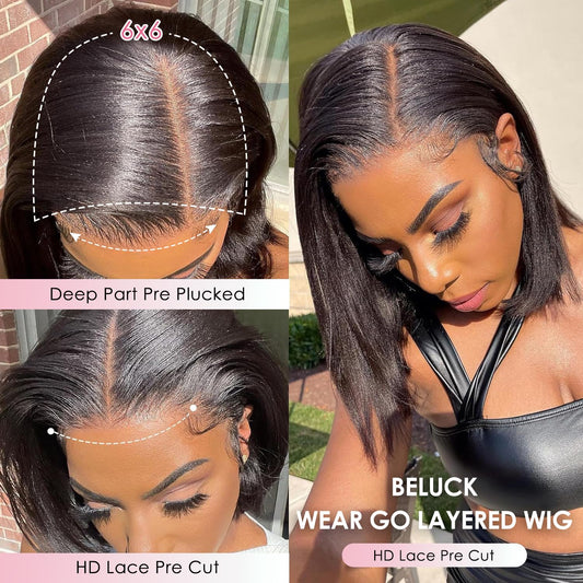 Highlight 1B/30 Layered Face-Framing Straight Glueless Wigs Bob Ready To Wear Wig 6x6 Hd Lace Closure Wigs