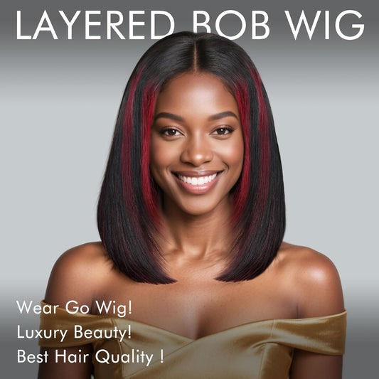 Highlight Burgundy Layered Glueless Wigs Bob Wear Go Wig Straight 6x6 Hd Lace Closure Wigs