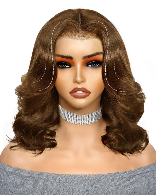 Beluck Brown Bob Wig Human Hair 250 Density Curtain Bang 6X6 Lace Closure Wear Go Glueless Wigs