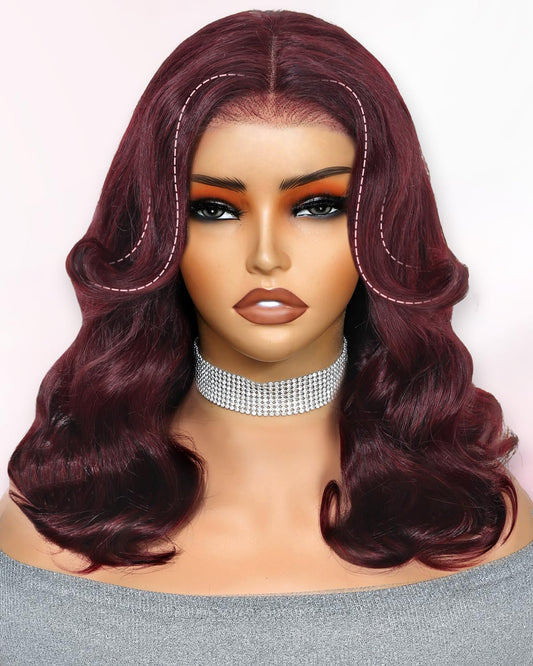 99J Burgundy Black Cherry Wig Curtain Bangs 6x6 Glueless Wigs Bob Ombre Loose Body Wave Hd Lace Closure Wigs
