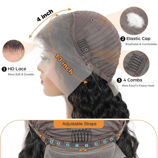 13X6 Lace Front Wig Human Hair Pre Plucked, Water Wave Frontal Wigs Human Hair HD Lace, Glueless 13x6 Lace Front Wigs Human Hair Colored With Baby Hair